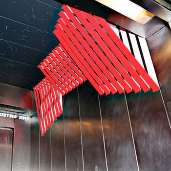 - Installation o.T., 2012. 100x180x80, GAFFA-Klebeband, Fahrstuhl
